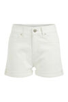 5-Pocket-Shorts aus gewaschenem Stretch-Denim mit hoher Taille und etwas weiterem Hosenbein mit Saumaufschlag. Die Hose ist mit einem Reißverschluss und Knopf ausgestattet.