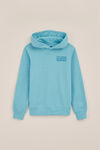 Normal geschnittenes Baumwoll-Sweatshirt mit Aufdruck vorne und hinten, Kapuze, Fleecefutter und langen Ärmeln.