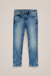 Robust, schlicht, immer gut. Diese Slim Fit-Jeans hat ein klassisches 5-Pocket-Design, schmale Beine und eine helle Waschung für einen coolen used Look. Ein Knopf- und Reißverschluss sorgt für eine bequeme Passform.
