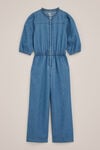 Super cool und bequem. Dieser Overall aus 100% Baumwolle hat eine normale Passform, gerade Beine und 3/4-Ärmel mit elastischem Abschluss. Die Rüschen am Rundhalsausschnitt machen es besonders modisch, und der Gummizug in der Taille sorgt für hohen Tragekomfort.