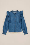 Hart und süß passen erstaunlich gut zusammen. Diese Jeansbluse in normaler Passform hat einen Rundhalsausschnitt, Rüschen und ein dezentes Plissee-Detail.