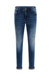 Blue Ridge 5-Pocket-Jeans aus stretch mit Skinny-Fit-Passform, Reißverschluss mit Knopf, verstellbarem Gummizug am Bund und eng anliegendem Hosenbein. Modisches Detail: Die Selvedge-Webkante am Saumaufschlag. Bis Größe 128 hat der Artikel einen Hakenverschluss.