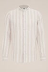 Entdecken Sie die endlosen Stylingmöglichkeiten dieses Herren-Oberhemds (Regular-Fit-Modell) aus einem Leinen-Mix. Das Modell hat ein elegantes Muster, einen Mao-Kragen, lange Ärmel und einen Knopfverschluss.