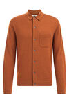 Ein schmal geschnittener Pullover aus Merinowolle mit einer Brusttasche und einem Knopfverschluss. Das Modell hat einen Polokragen und lange Ärmel.