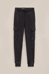 Schmal geschnittene Jogginghose aus Baumwolle in Vintage-Optik. Das Modell hat Cargotaschen, zwei Seitentaschen, Fleecefutter, einen elastischen Bund mit Kordelzug, einen imitierten Hosenschlitz und schmale Beine.