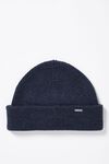 Feinstrickmütze aus Merinowolle mit Rippstrickbündchen.