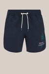 Sonne, Meer und ein Hauch von Nostalgie. Diese Badehose kombiniert eine normale Passform mit einem elastischen Bund und Kordelzügen. Der Palmenaufdruck und der Schriftzug „Palm League“ verleihen ihr Charakter, und die kontrastierenden Paspeln an den Hosenbeinen vervollständigen den Retro-Look der 50er Jahre. Mit einem gemusterten Design, zwei Seitentaschen und einer Gesäßtasche mit Klettverschluss.