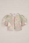 Für den Sonnenschein in deinem Leben! Dieses Oberteil hat kurze Ballonärmel, eine offene Vorderseite mit Knopf und ein florales Muster mit dezentem Glitzergarn. Fröhlich, verspielt und mit genau dem richtigen Maß an Glanz für jeden Tag.