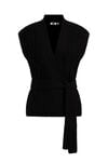 Ärmellose Weste aus Acryl-Mix mit Zopfmuster und abnehmbarem Bindegürtel. Normale Passform und klassischer Ausschnitt.