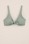 Sommerlich und stilvoll. Dieses eng anliegende Bikinioberteil hat schmale, verstellbare Träger, eine Knopfleiste auf der Vorderseite und einen Schiebeverschluss auf der Rückseite. Inklusive abnehmbarer Polster.