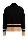 Normal geschnittener Pullover aus Viskose-Mix mit kontrastierendem Streifen, Stehkragen und langen Ärmeln.