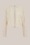 Mühelos strahlend und elegant. Diese Strickjacke aus Jersey hat eine normale Passform, einen Rundhalsausschnitt, lange Ärmel und fällt kurz für einen modernen, femininen Look. Die Jacke hat keinen Verschluss und ist mit einer Allover-Struktur und Pailletten für zusätzlichen Glanz versehen.
