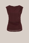 Zart in der Optik, kraftvoll im Detail. Diese eng anliegende Top mit rundem Ausschnitt und ohne Ärmel besteht aus einer bequemen Unterlage, über der eine transparente Mesh-Schicht liegt. Die elastische Taille an beiden Seiten und die plissierte linke Schulter verleihen Eleganz.