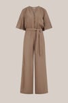 Alles in einem, ohne dass es zu viel wird. Dieser Jumpsuit hat eine gerade Passform, einen Mao-Kragen und einen Knopfverschluss am Oberteil. Große Puffärmel mit Gummizug, elastischer Bund mit Bindegürtel und gerade Hosenbeine. Immer gut.