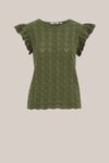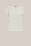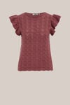 Ein neuer Favorit! Dieser Strickpulli hat eine normale Passform und einen Rundhalsausschnitt für eine schöne Basis. Das ärmellose Modell ist mit Rüschen an den Schultern versehen. Das teilweise offen gearbeitete Muster sorgt für eine luftige und subtile Struktur.
