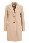 Ein Mantel in normaler Passform aus einer Wollmischung mit einem Knopfverschluss und zwei Seitentaschen. Das Modell hat einen normalen Kragen und einen Schlitz an der Rückenpartie.
