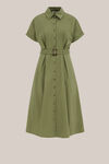 Zeitlos, frisch, immer schmeichelhaft. Dieses Midikleid hat eine normale Passform, einen Kragen, kurze Ärmel, einen Knopfverschluss von oben bis unten und einen Taillengürtel. Der A-Linien-Schnitt und die Midi-Länge sorgen für einen eleganten, femininen Look.