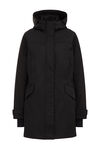 Ein normal geschnittener Parka aus einer Baumwollmischung mit Kapuze, Zwei-Wege-Reißverschluss und Druckknopfverschluss. Das gesteppte Modell hat zwei schräge Brusttaschen mit Druckknopfverschluss und zwei Klappentaschen. Die Jacke hat lange Ärmel und elastische, gerippte Bündchen.