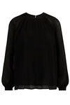 Normal geschnittene Plisseebluse mit Knopfleiste, rundem Ausschnitt und langen Ärmeln.