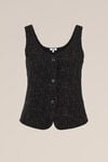 Beim Anziehen merkt man es sofort. Diese Bouclé-Weste mit regulärer Passform, V-Ausschnitt und Knopfverschluss verleiht jedem Look Struktur und Stil.