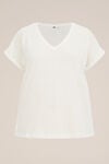 Normal geschnittenes Top aus einer Viskosemischung mit Ajourmuster und V-Ausschnitt.