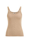 Normal geschnittenes Top aus geripptem Viskose-Mix mit eingearbeitetem Glitzergarn, Ausgestattet mit V-Ausschnitt und Rippbündchen.