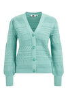 Normal geschnittene Strickjacke aus Baumwoll-Mix mit Ajourmuster und Knöpfen. Ausgestattet mit V-Ausschnitt und langen Ärmeln.