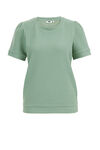 Entdecke die unendlichen Stylingmöglichkeiten dieses normal geschnittenen Sweatshirts aus einer weichen Baumwollmischung. Das Modell hat eine einzigartige Struktur und modische Falten an den Schultern. Ein klassischer Rundhalsausschnitt und kurze Ärmel runden das Modell ab.