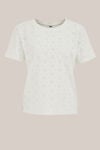 Luftig genug für heiße Tage. Dieses T-Shirt hat eine normale Passform mit Rundhalsausschnitt und kurzen Ärmeln. Die teilweise durchbrochene Broderie Anglaise gibt Luft und ist außerdem ein schönes Wort, das man beim nächsten Treffen fallenlassen kann.
