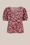 Wird es ein neuer Favorit? Dieses T-Shirt hat eine normale Passform, einen V-Ausschnitt und kurze Ärmel. Die gesmokten Manschetten an den Ärmeln sind ein verspieltes Detail. Stilvoll verarbeitet mit einem Allover-Blättermuster.