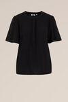 Hinterlasse immer einen guten Eindruck, egal wo du hingehst! Diese regulär geschnittene Bluse besteht aus Webstoff und hat eine Knopfleiste, Volants, einen runden Ausschnitt und kurze Ärmel. Das Modell fällt weich, trägt sich bequem und lässt sich mühelos zu verschiedenen Outfits kombinieren.