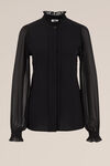 Einfach elegant! Diese Regular-Fit-Bluse in Webqualität mit verdeckter Knopfleiste, Rüschen und halbtransparenten Ärmeln ist perfekt für jeden Anlass. Für die Tage, an denen du mühelos elegant sein willst.