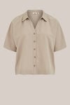 Ein Kleidungsstück, das man anzieht und das so bequem ist, dass man vergisst, dass man es trägt. Diese Bluse hat eine normale Passform, einen Kragen und einen V-Ausschnitt mit Knopfverschluss und kurzen Ärmeln. Die Leinenmischung fühlt sich leicht an und hält das Gesamtbild schön gepflegt.