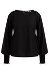 Normal geschnittene Bluse aus 100 % Viskose, Rundhalsausschnitt mit Knopf hinten und langen Ärmeln mit Smokbündchen.