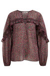 Normal geschnittene Bluse aus fein gewebtem Material mit Muster und Rüschen. Ausgestattet mit V-Ausschnitt und langen Ärmeln.