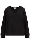 Normal geschnittene Bluse aus fein gewebtem Material mit V-Ausschnitt aus Spitze und langen Ärmeln mit Manschetten.