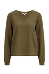 Normal geschnittene Bluse aus fein gewebtem Material mit V-Ausschnitt aus Spitze und langen Ärmeln mit Manschetten.