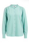 Normal geschnittene Bluse aus Viskose mit Strukturmuster und Knöpfen. Ausgestattet mit langen Ärmeln und Rundhalsausschnitt mit Rüschen.