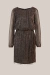Ein atemberaubender Look, der einen bleibenden Eindruck hinterlässt. Dieses Kleid mit normaler Passform, Rundhalsausschnitt und langen Ärmeln mit Gummizug am Saum, einem Knopfverschluss auf der Rückseite und einem Gummizug in der Taille besteht aus einem schwarzen Unterkleid mit einer transparenten Oberschicht aus Glitzergarn in schmeichelhafter Minilänge.