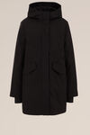 Normal geschnittener wattierter Parka aus Baumwoll-Mix mit Kapuze, Reißverschluss in zwei Richtungen und Druckknöpfen. Das gesteppte Modell hat zwei schräge Brusttaschen mit Druckknopfverschluss und zwei Klappentaschen. Die Jacke hat lange Ärmel, elastische, gerippte Bündchen und einem wasserabweisenden Finish.