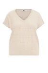 Dieser normal geschnittene Kurzarmpullover aus hochwertigem Strick besticht durch sein schönes Ajourmuster. V-Ausschnitt und kurze Ärmel verleihen ihm eine elegante, zeitlose Optik.