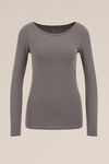 Umarme deine Stärke mit subtilen Reizen. Ein eng anliegendes Shirt mit Bootsausschnitt und eleganten langen Ärmeln. Lass dich in mühelosem Stil und zeitlosem Komfort erstrahlen.