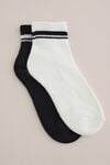 Stil steckt in den kleinsten Details. Diese Damensocken haben eine normale Passform mit einem Paar in Schwarz mit einem weißen Streifen und einem Paar in Weiß mit einem schwarzen Streifen am Saum. Einfach, schick und immer praktisch auf Vorrat zu haben.