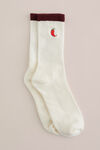 Schön für die Schublade. Diese Socken mit normaler Passform sind ab dem Knöchel gerippt, mit einer farbigen Rippborte an der Oberseite und einer aufgestickten roten Paprika direkt darunter.