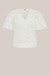 Romantisch, luftig und absolut zeitgemäß. Dieses TOP hat eine normale Passform, einen V-Ausschnitt und einen Knopfverschluss, mit kurzen Ballonärmeln und einem durchgehenden Lochstickerei-Design für einen raffinierten, femininen Look.