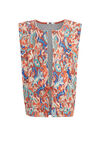 Eine normal geschnittene Weste aus einer gemusterten, strukturierten Baumwollmischung. Das Modell hat einen Schleifenverschluss und Schulterdetails.
