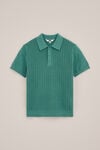 Ein geschmackvoller Look mit Charakter. Dieses Poloshirt für Jungen hat eine normale Passform, einen Polokragen, kurze Ärmel und eine durchbrochene Struktur auf der Vorderseite.