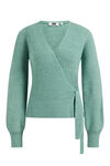 Normal geschnittene Wickeljacke aus grobem Strick mit Bändchenverschluss, V-Ausschnitt und langen Ärmeln mit Rippbündchen.