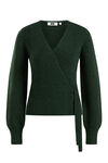 Normal geschnittene Wickeljacke aus grobem Strick mit Bändchenverschluss, V-Ausschnitt und langen Ärmeln mit Rippbündchen.