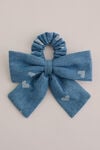 Jeder Pony sieht mit einer Schleife besser aus, das ist (fast) Wissenschaft. Dieses Haargummi in Denim-Optik hat eine Schleife mit Weißherzen. Wir sind uns sicher: Das ist ein Haar-Accessoire zum Verlieben.